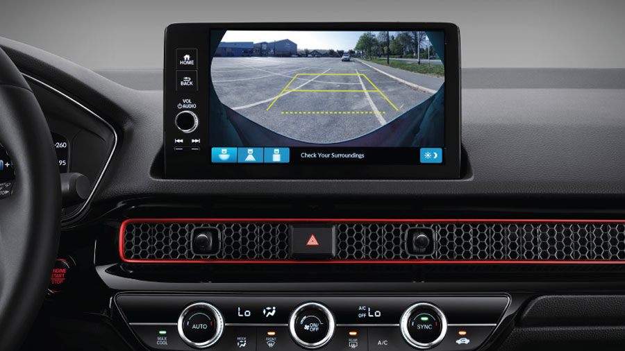 Chế độ quan sát làn đường (LaneWatch) qua hệ thống camera đặt ở gương chiếu hậu giúp quan sát và cảnh báo khoảng cách an toàn với phương tiện gần nhất (RS, e:HEV RS).