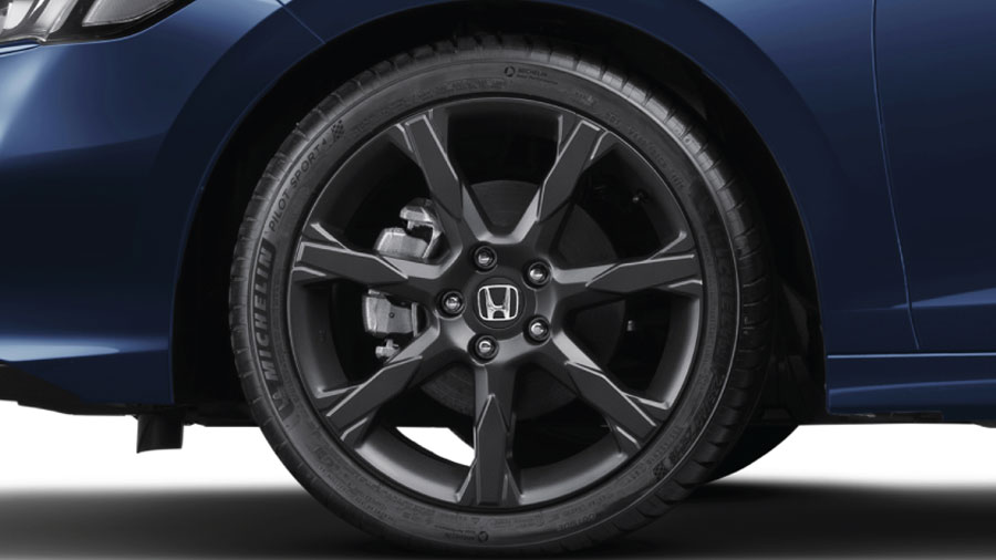 Honda Civic mới với diện mạo thời thượng và nam tính hơn. Lưới tản nhiệt mới được thiết kế với họa tiết lục giác độc đáo, kết hợp cùng cản trước sắc nét và hốc gió lớn không chỉ tăng cường tính thể thao mà còn tối ưu hóa tính khí động học, giúp xe di chuyển mượt mà hơn ngay cả ở tốc độ cao. Đặc biệt, Civic mới (RS, e:HEV RS) được trang bị bộ mâm xe 18 inch với thiết kế đa chấu mạnh mẽ, giúp nâng tầm thiết kế thể thao và tối ưu khả năng bám đường khi lái. Đây chính là sự kết hợp hoàn hảo giữa thẩm mỹ và hiệu năng mà Honda hướng đến. Bên cạnh ngoại thất thể thao độc đáo.