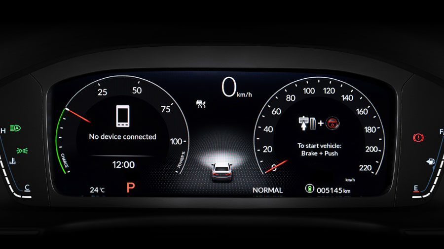 Bảng đồng hồ trung tâm điện tử 10.2 inch (RS, e:HEV RS) hiển thị sắc nét, cung cấp thông tin rõ ràng. Bảng đồng hồ có thể tùy chọn hiển thị thông tin bài nhạc, tình trạng cửa, thông số hành trình, … qua nút bấm trên vô lăng, đảm bảo sự tiện lợi mà vẫn giữ được sự tập trung tối đa khi cầm lái.