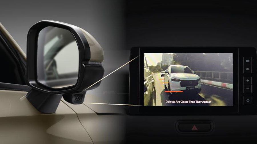 Chế độ quan sát làn đường (LaneWatch) qua hệ thống camera đặt ở gương chiếu hậu giúp quan sát và cảnh báo khoảng cách an toàn với phương tiện gần nhất (L, e:HEV RS).