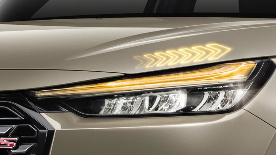 Cụm đèn LED trước kết hợp với dải đèn xi nhan chạy đuổi tinh xảo (e:HEV RS).
