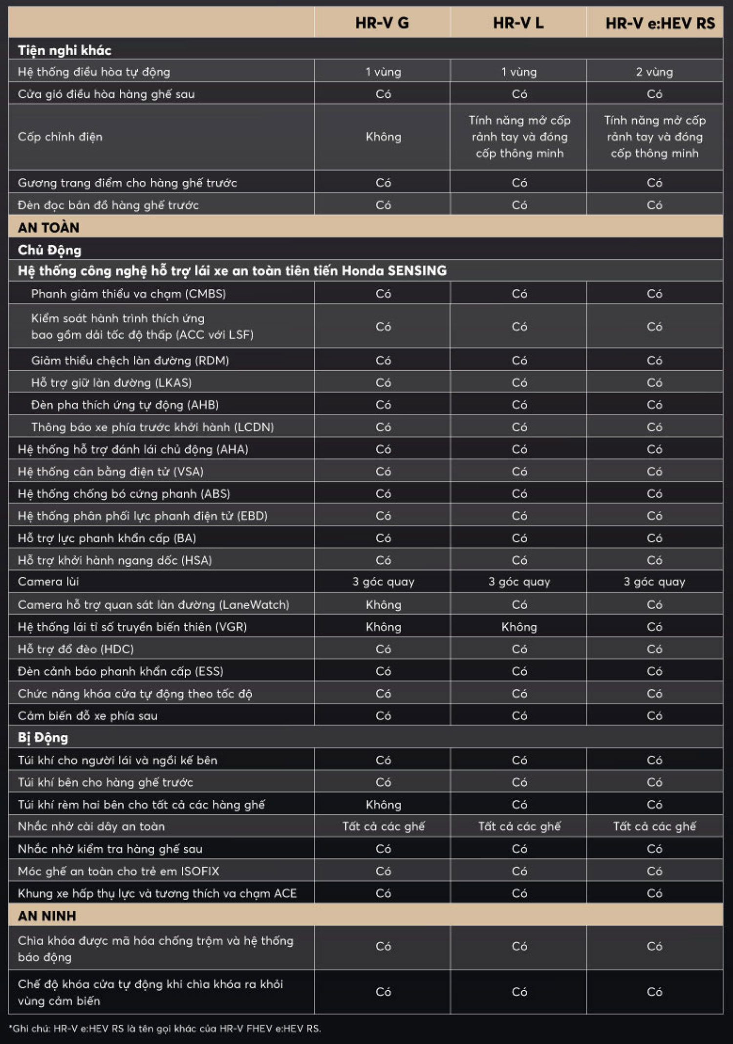 Tất cả các phiên bản của HR-V mới đều được trang bị Hệ thống công nghệ hỗ trợ lái xe an toàn tiên tiến Honda SENSING, bảo vệ toàn diện cho người lái, hành khách, người đi đường và các phương tiện xung quanh.